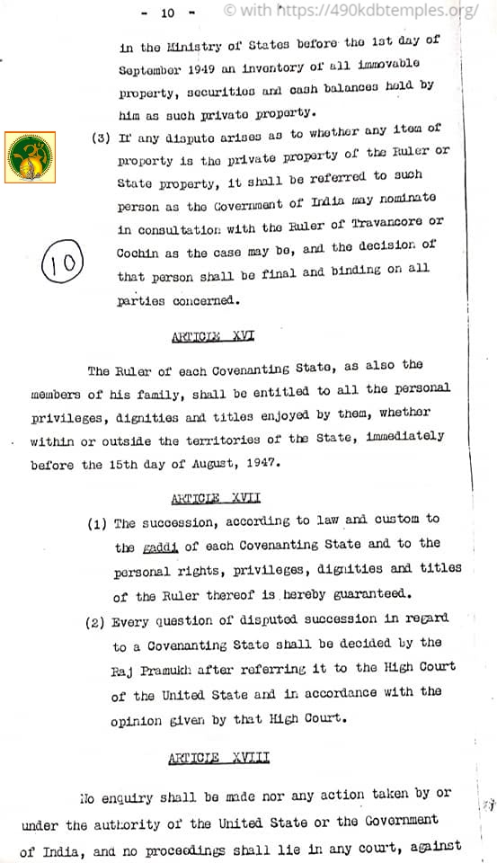 The Covanant India -Thiru-Cochi Maharajas 1949-10 of13